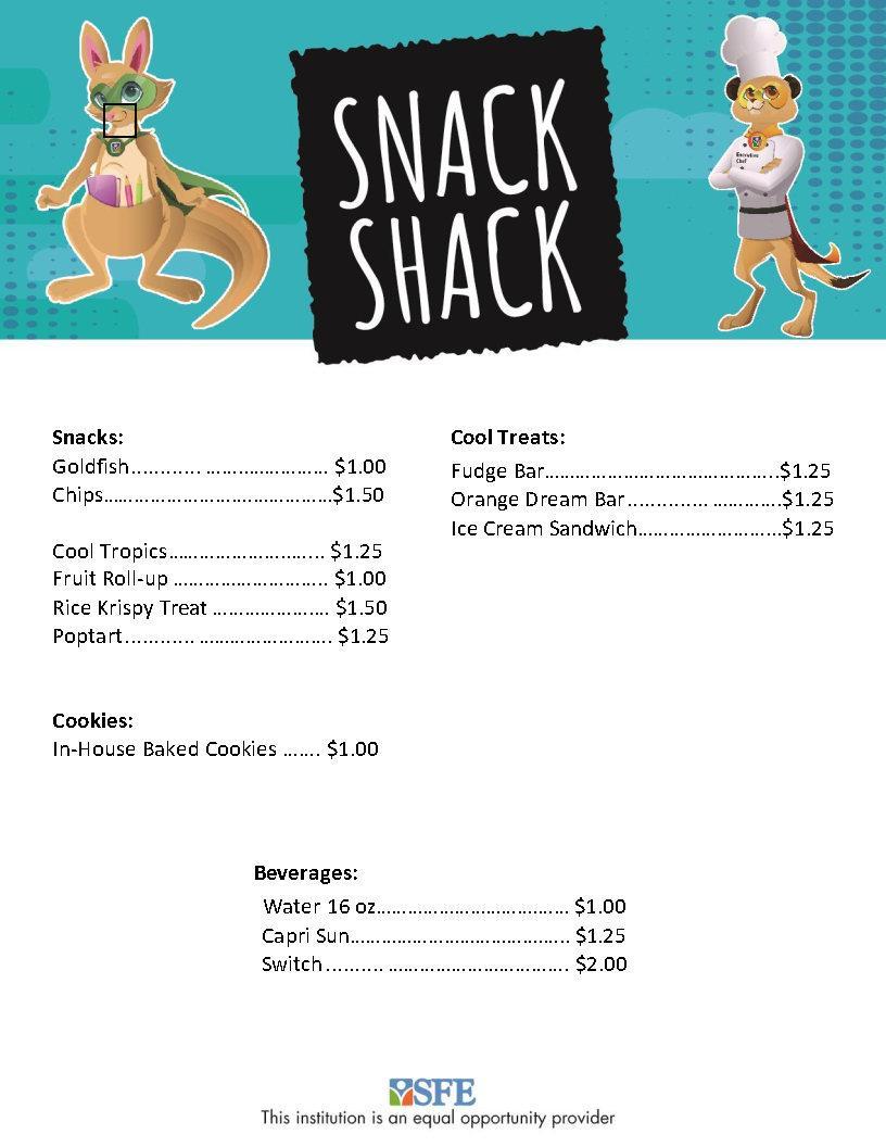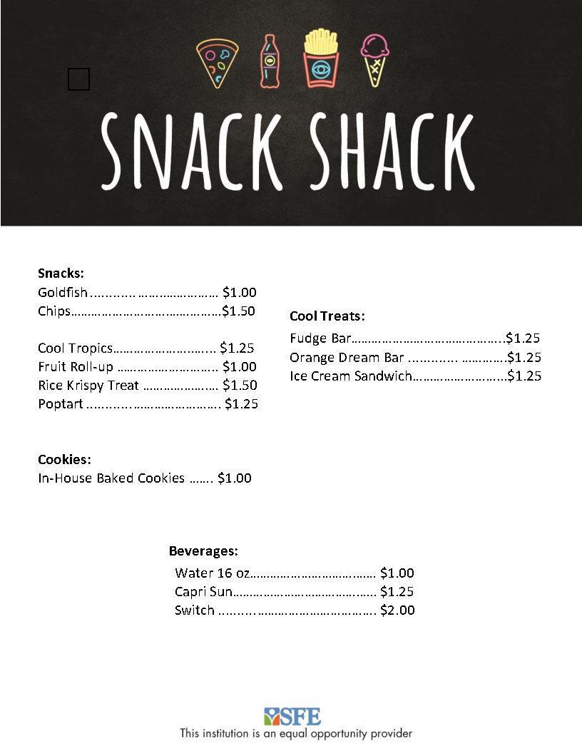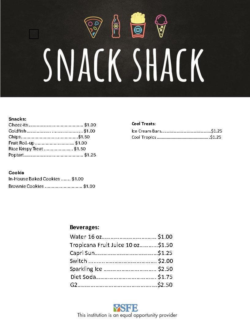 Comal ISD is committed to offering healthy snack options that meet federal Smart Snacks Standards. These standards ensure that all snacks, beverages, and ice creams sold in our schools support our students' health. Our Snack Shack menus, available for Elementary, Middle, and High School students, provide a variety of compliant and nutritious options to promote healthier choices throughout the school day.
